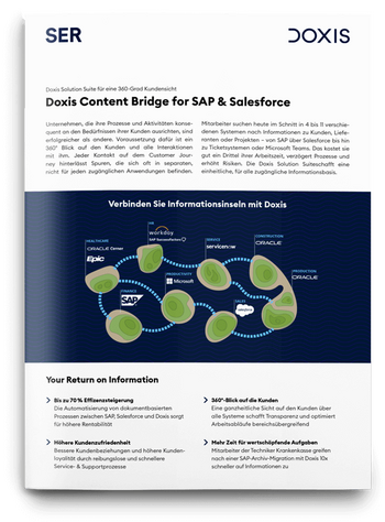 Die Doxis Content Bridge for SAP & Salesforce schafft eine gemeinsame Informationsbasis und stellt Informationen im Kontext dort bereit, wo sie benötigt werden.