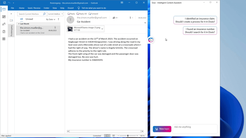 - Doxis weist E-Mails automatisch dem richtigen Kontext zu und minimiert so manuelle Ablagefehler.