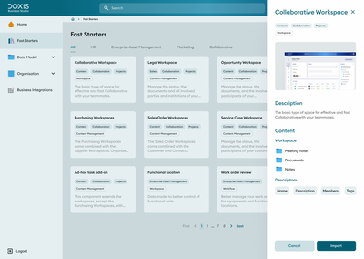 Die Doxis Fast Starters-Bibliothek bietet ein breites Spektrum an vorkonfigurierten und einfach zu modifizierenden ECM-Apps für bestimmte Unternehmensbereiche und Branchen, das ständig weiter ausgebaut wird. Wählen Sie einfach Workspaces und Workflows für Ihr aktuelles Projekt. Welche Fast Starters es aktuell gibt, erfahren Sie im Doxis Fast Starter-Katalog.