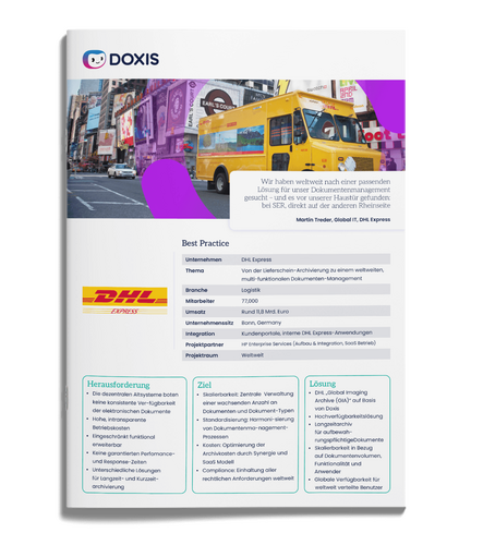 Mit Doxis hat DHL das „Global Imaging Archive“ umgesetzt: das weltweit größte kommerzielle Dokumentenarchiv. Es enthält über 8,5 Milliarden Dokumente, macht sie weltweit verfügbar und wächst problemlos weiter.