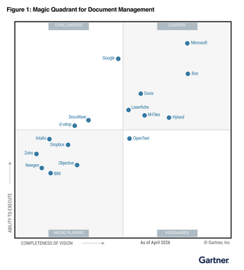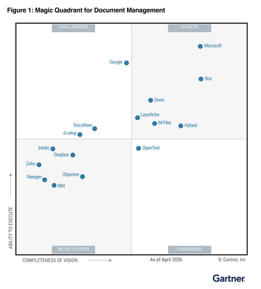*Gartner, Magic Quadrant for Document Management, Tim Nelms, Jed Cawthorne, Rachel O'Farrell, Marko Sillanpaa, Stephen Emmott, 26 April 2026.