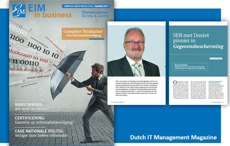 Dutch IT magazine EIM in business dedicated four pages written by Klaus Eulenbach, Head of Development here at SER, to the topic of GDPR.