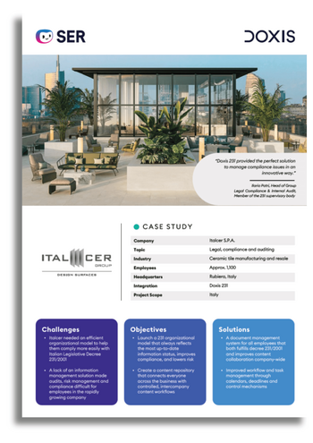 Find out how business manufacturing & supplier Italcer S.P.A was able to navigate compliance with Doxis, gaining powerful audit, risk and compliance management-as-a-service.
