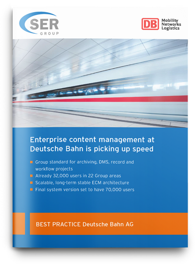 70,000 users, more than 300 million documents, 21 tenants — the company-wide Bahn Content Management (BCM) system with the Doxis platform. Learn more about BCM, which was first run in the DB Systel data centers in 2011 and has since been completely shifted to the cloud.
