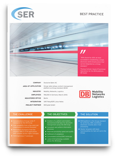 Over 70,000 users, more than 300 million documents, 21 tenants — the company-wide Bahn Content Management (BCM) system with the Doxis platform. Learn more about BCM, which was first run in the DB System data center in 2011 and has since been completely shifted to the cloud.