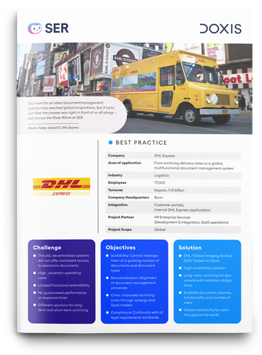 With Doxis, DHL launched the world's largest commercial document archive: the Global Imaging Archive. It houses over 8.5 billion documents, makes them available globally and easily grows with demand.