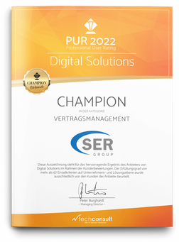 En la encuesta de techconsult a usuarios de la gestión de contratos, los clientes escogieron a SER Group como «campeón» en funcionalidad, cartera de productos, ventajas de la solución e innovación.