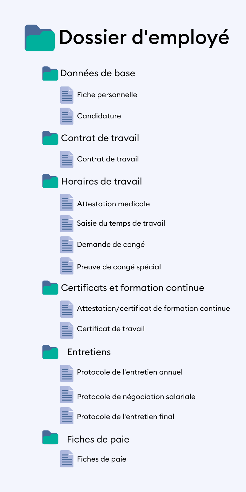 Par exemple, vous pouvez créer un dossier électronique de salarié à partir des éléments suivants :