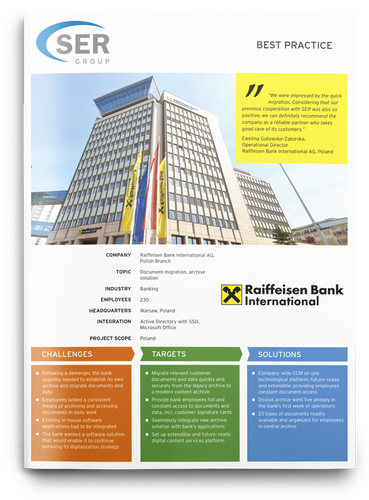 Raiffeisen Bank International AG a migré près d’un téraoctet de documents et de données vers Doxis tout en continuant à fonctionner normalement sans interrompre le travail de ses collaborateurs.