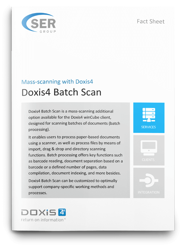 Vous recevez des propositions commerciales, des factures, des contrats et autres documents papier ? Doxis peut les numériser et vous aider à passer au tout numérique. Simples courriers ou lots de documents, Doxis Capture permet de numériser tous les documents au fur et à mesure de leur arrivée, de les replacer dans leur contexte métier et de déclencher automatiquement des processus en aval. Vous réduisez alors vos délais de traitement, en finissez avec les tâches manuelles et garantissez d’emblée le respect de vos obligations de conformité. Dès le départ, numérisez vos documents avec Doxis et créez ainsi les conditions de la digitalisation de vos processus opérationnels.