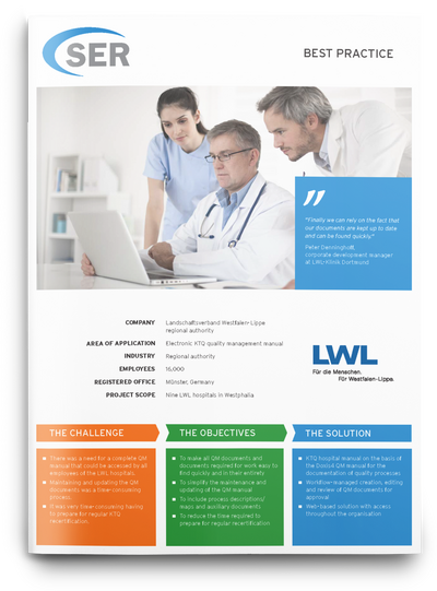 Dans les cliniques de l’association régionale Westphalie-Lippe (LWL), la recertification KTQ régulière est une nécessité absolue. Maintenant que tous les documents pertinents sont disponibles d’un simple clic, Doxis facilite le processus comme jamais auparavant. Découvrez comment les cliniques de l’association régionale Westphalie-Lippe (LWL) ont considérablement allégé leur travail de recertification grâce à Doxis.